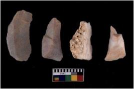 | Description / विवरण | There are n 4 flakes tool; there are large flakes with sides trimmed, Marks of secondary flaking are present on the both the faces. The dorsal is relatively flat. |