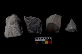 | Description / विवरण | There are n 4 flakes tool; there are multidirectional irregular scar pattern on them; made of short flakes and all four have tapering edges. |