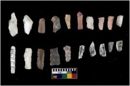 | Description / विवरण | There are n 20 Flake tool; There are multidirectional irregular scar pattern on them. few have blunt edges, Some of them are tapering at one end. |