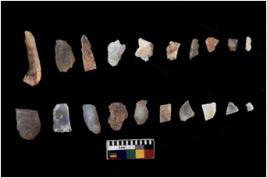 | Description / विवरण | There are n 20 Flake tool; There are multidirectional irregular scar pattern on them. few have blunt edges, Some of them are tapering at one end. |