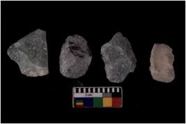 | Description / विवरण | There are n 4 flakes tool; there are multidirectional irregular scar pattern on them; made of short flakes and all four have tapering edges. |