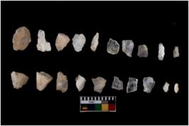 | Description / विवरण | There are n 20 flakes tool; there are multidirectional irregular scar pattern on them, made of short flakes and few have tapering edges. |