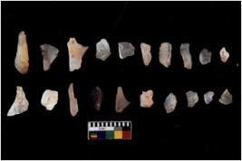 | Description / विवरण | There are n 20 Flake tool; There are multidirectional irregular scar pattern on them. few have blunt edges, Some of them are tapering at one end. |
