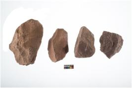 | Description / विवरण | There are n-4 of intact cores made up of Quartzite. There are multidirectional irregular dominant scar pattern on both dorsal and ventral face of the cores. |
