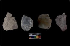 | Description / विवरण | There are n 4 flakes tool; there are multidirectional irregular scar pattern on them; made of short flakes and all four have tapering edges. |