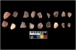 | Description / विवरण | Specimen of chips with prominent flaking marks. It made up of a short flakes with sides trimmed. |