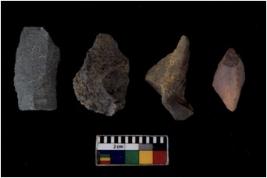 | Description / विवरण | There are n 4 flakes tool; there are flakes tool with prominent flaking marks. It made up of a large flakes with sides trimmed. It is rectangular in shaped. |