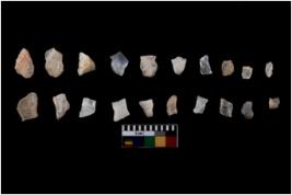 | Description / विवरण | There are n 20 flakes tool; there are multidirectional irregular scar pattern on them, made of short flakes and few have tapering edges. |