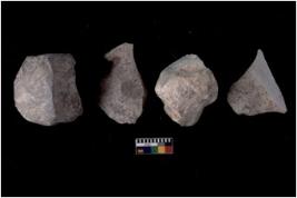 | Description / विवरण | There are n 4 flakes tool; there are multidirectional irregular scar pattern on them; made of short flakes and all four have tapering edges. |