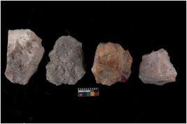 | Description / विवरण | There are n 4 flakes tool; there are multidirectional irregular scar pattern on them; made of short flakes and all four have tapering edges. |