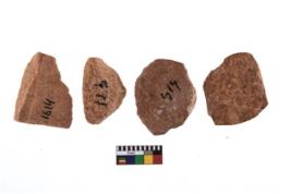 | Description / विवरण | There are n-4 of intact cores made up of Quartzite. There are multidirectional irregular dominant scar pattern on both dorsal and ventral face of the cores. |
