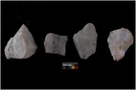 | Description / विवरण | There are n 4 flakes tool; there are multidirectional irregular scar pattern on them; made of short flakes and all four have tapering edges. |