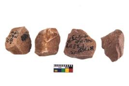 | Description / विवरण | There are n-4 of intact cores made up of Quartzite. There are multidirectional irregular dominant scar pattern on both dorsal and ventral face of the cores. |