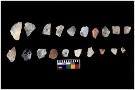 | Description / विवरण | There are n 20 flakes tool; there are multidirectional irregular scar pattern on them, made of short flakes and few have tapering edges. |