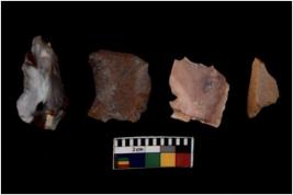 | Description / विवरण | There are n 4 flakes tool; there are large flakes with sides trimmed, Marks of secondary flaking are present on the both the faces. The dorsal is relatively flat |