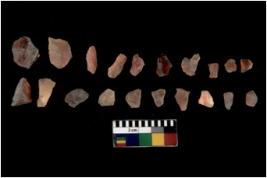| Description / विवरण | Specimen of chips with prominent flaking marks. It made up of a short flakes with sides trimmed. |