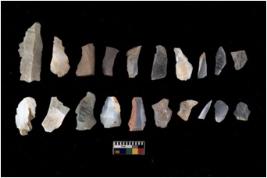 | Description / विवरण | There are n 20 Flake tool; There are multidirectional irregular scar pattern on them. few have blunt edges, Some of them are tapering at one end. |
