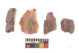 | Description / विवरण | There are n 4 flakes tool; there are large flakes with sides trimmed, Marks of secondary flaking are present on the both the faces. The dorsal is relatively flat. |