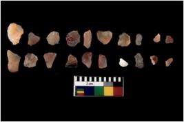 | Description / विवरण | Specimen of chips with prominent flaking marks. It made up of a short flakes with sides trimmed. |