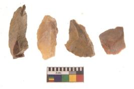 | Description / विवरण | There are n 4 flakes tool; there are flakes tool with prominent flaking marks. It made up of a large flakes with sides trimmed. |