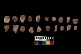 | Description / विवरण | Specimen of chips with prominent flaking marks. It made up of a short flakes with sides trimmed. |