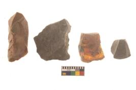 | Description / विवरण | There are n 4 flakes tool; there are large flakes with sides trimmed, Marks of secondary flaking are present on the both the faces. The dorsal is relatively flat. |