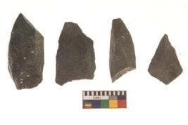 | Description / विवरण | There are n 4 flakes tool; there are flakes tool with prominent flaking marks. It made up of a large flakes with sides trimmed. |