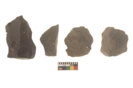 | Description / विवरण | There are n 4 flakes tool; there are flakes tool with prominent flaking marks. It made up of a large flakes with sides trimmed. |