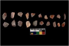 | Description / विवरण | Specimen of chips with prominent flaking marks. It made up of a short flakes with sides trimmed. |