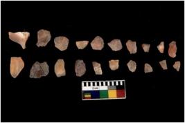 | Description / विवरण | Specimen of chips with prominent flaking marks. It made up of a short flakes with sides trimmed. |