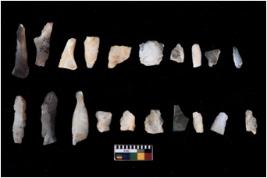 | Description / विवरण | There are n 20 flakes tool; there are multidirectional irregular scar pattern on them, made of short flakes and few have tapering edges. |