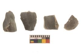 | Description / विवरण | There are n 4 flakes tool; there are flakes tool with prominent flaking marks. It made up of a large flakes with sides trimmed. |