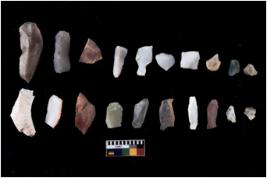 | Description / विवरण | There are n 20 Flake tool; There are multidirectional irregular scar pattern on them. few have blunt edges, Some of them are tapering at one end. |