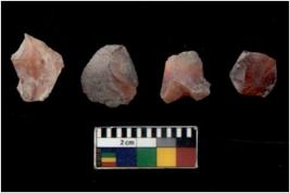| Description / विवरण | Specimen of flakes tool with prominent flaking marks. It made up of a short flakes with sides trimmed. |