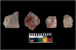 | Description / विवरण | Specimen of flakes tool with prominent flaking marks. It made up of a short flakes with sides trimmed. |