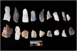 | Description / विवरण | There are n 20 Flake tool; There are multidirectional irregular scar pattern on them. few have blunt edges, Some of them are tapering at one end. |