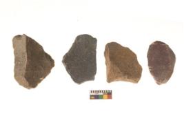 | Description / विवरण | There are n 4 flakes tool; there are flakes tool with prominent flaking marks. It made up of a large flakes with sides trimmed. |
