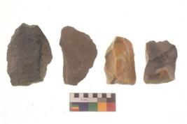 | Description / विवरण | There are n 4 flakes tool; there are large flakes with sides trimmed, Marks of secondary flaking are present on the both the faces.The dorsal is relatively flat. |