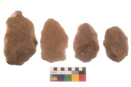 | Description / विवरण | There are n 4 flakes tool; there are multidirectional irregular scar pattern on them; made of long flakes and all four have tapering edges. |