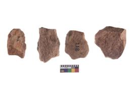 | Description / विवरण | There are n-4 of intact cores made up of Quartzite. There are multidirectional irregular dominant scar pattern on both dorsal and ventral face of the cores. |