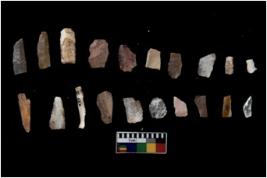 | Description / विवरण | There are n 20 Flake tool; There are multidirectional irregular scar pattern on them. few have blunt edges, Some of them are tapering at one end. |