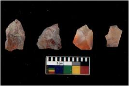 | Description / विवरण | Specimen of flakes tool with prominent flaking marks. It made up of a short flakes with sides trimmed. |