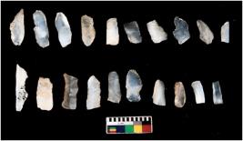 | Description / विवरण | There are n-20 microliths and have sharp edges. Most of the are tapering at one end while few have a broken tip. |