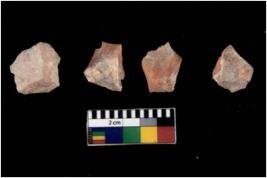 | Description / विवरण | Specimen of flakes tool with prominent flaking marks. It made up of a short flakes with sides trimmed. |