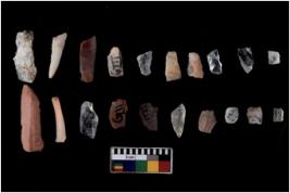 | Description / विवरण | There are n 20 Flake tool; There are multidirectional irregular scar pattern on them. few have blunt edges, Some of them are tapering at one end. |