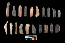 | Description / विवरण | There are n-20 microliths and show irregular scar pattern on both dorsal and ventral sides. Most of them are elongated in shape and few have a broken tip. |