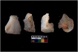 | Description / विवरण | Four utilised worked cores with sharp edges. Some of them are tapering at one end. Removal of flakes from few sides. |