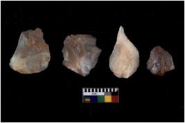 | Description / विवरण | Four utilised worked cores with sharp edges. Some of them are tapering at one end. Removal of flakes from few sides. |