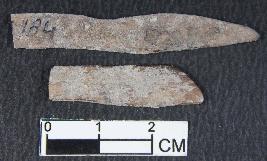| Description / विवरण | A thin bone point having irregualr bicone in shape . Its colour is dull red and surface is rough. |