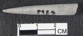 | Description / विवरण | A bone point having bicone in shape . Its colour is grey and surface is rough. |